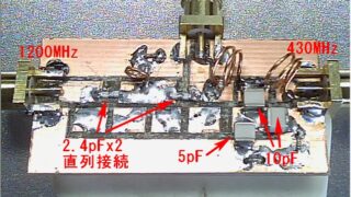 使用を想定するGPアンテナは430MHzと1200MHzで使用でき、430MHzは親機へ直接接続し1200MHzはトランスバータへ接続するためのダイプレクサを検討しました。市販のダイプレクサもあるのですが、N/M型コネクタがついており形状も...