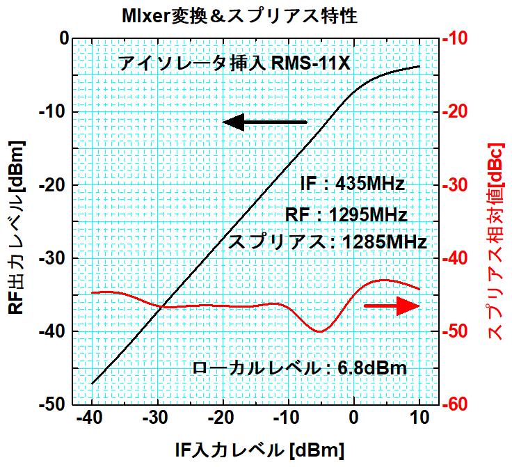アイソレータを挿入した際のミキサ出力スプリアス特性を示します。