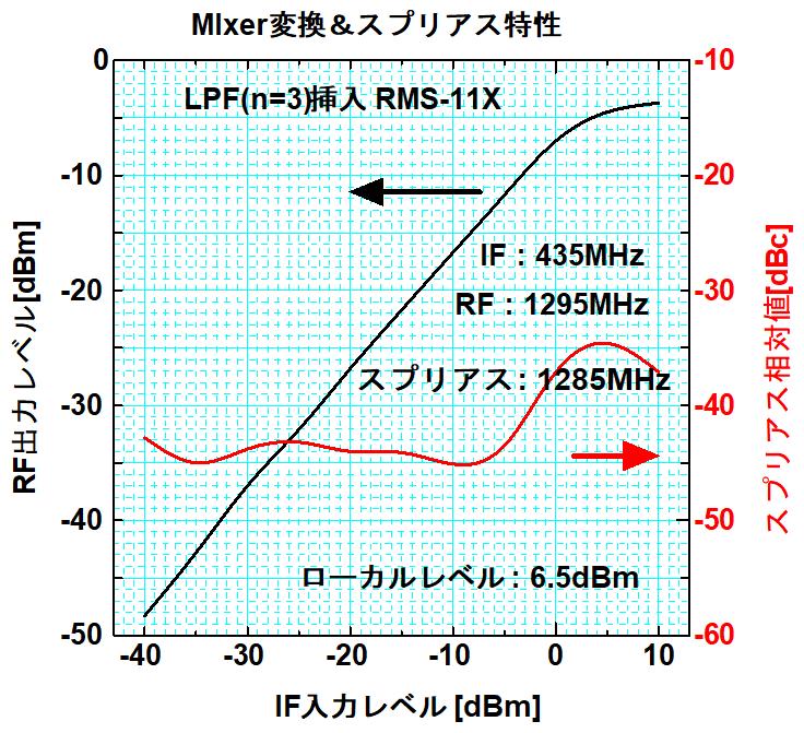 使用した3次LPFの特性はローカル発振器の二倍高調波に対する抑圧は25dBあり、帯域内スプリアスがこのローカル発振器の高調波に依存するのであればそれなりの帯域内スプリアス除去に効果があるはずです。