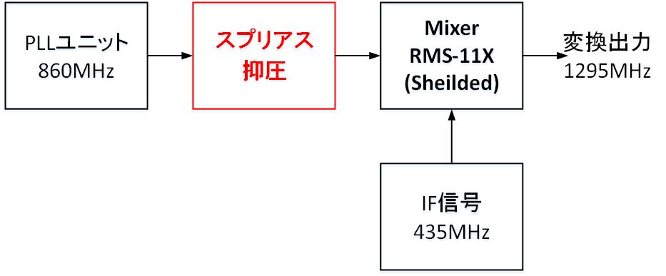 先に「送信ミキサ検討 - RMS-11X -」で検討したシールド処理されたミキサを使用してローカル発振器とミキサの間に挿入し、ローカル発振器で発生される高調波抑圧の効果を調査しました。