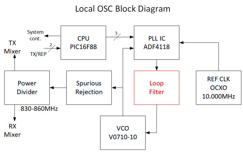 このフィルタで近接の位相雑音が低減され、またPLLのロックアップタイムが決定されます。